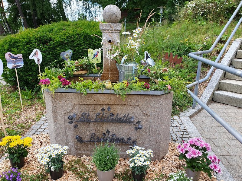 Gemeinsam mit Bewohnerinnen und Bewohnern wurde der St. Elisabeth Brunnen geschmückt. Das Motto lautete, ganz nach unserem Projekt mit dem LBV - Landesbund für Vogel- und Naturschutz in Bayern e.V. „Heimische Vögel entdecken“.