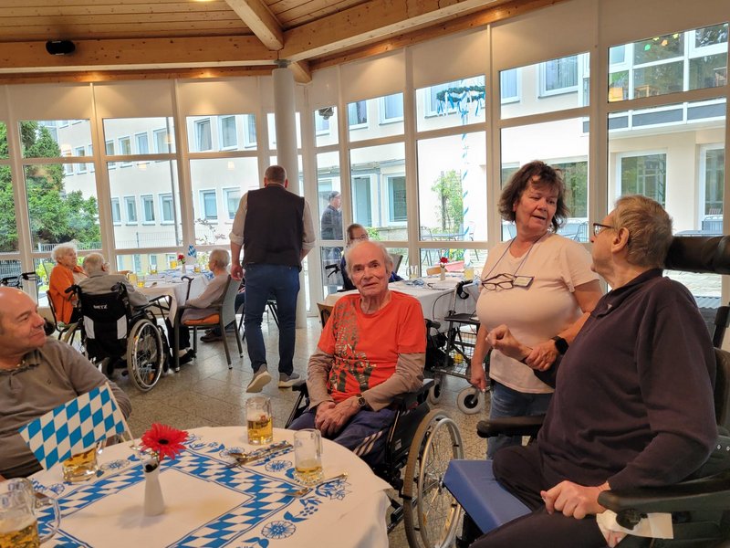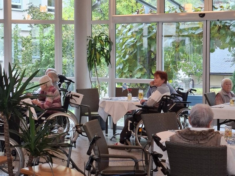 Trotz des unbeständigen Wetters ließen wir uns die gute Laune nicht verderben. In unserer Cafeteria und in geselliger Runde wurden frisch gegrillte Bratwürste mit Petersilienkartoffeln serviert, die herrlich dufteten und allen hervorragend schmeckten. Für die musikalische Unterhaltung war ebenfalls bestens gesorgt: Mit schwungvoller Musik, bekannten Volksliedern und typischen Oktoberfestklängen kam schnell Stimmung auf. Es wurde begeistert mitgesungen, geschunkelt und herzlich gelacht. Unsere Bewohnerinnen und Bewohner waren begeistert und freuen sich schon aufs nächste Fest.